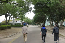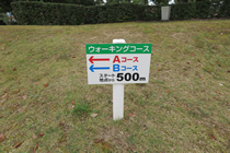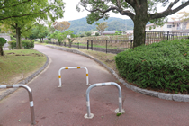 文化センターを背に、通路を横切りジョギングコースに合流。