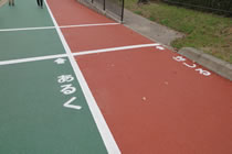 ここでは、ウォーキングとジョギングのレーンが分けられ、色で示されています。