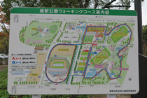 平日に取材をさせていただきましたが、たくさんの方が利用されていました。広大な敷地の中に、どこを歩いてもきれいに整備されている通路、要所要所に設置されている休憩場所やトイレ、AEDなど、安心・安全に運動に取り組めるようとても配慮されています。今回はBコース(3km)を歩きましたが、2Kmコース(Aコース)や1Kmのコース(陸上競技場周回コース)も整備されているので、利用出来る時間やその日の体力に合わせてコース選択できるのも嬉しいところです。
