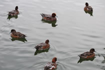 途中の橋の上で池を眺めると、鴨がいっぱいいました。頭の毛色が十人(羽?)十色。仲良く泳いでいる姿に癒やされました。