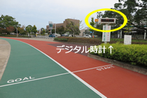 その前には1Kmコースのスタート/ゴール表示とデジタル時計があるのでタイム計測の目安にできます。