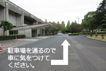 文化センター北側の駐車場を通過し突き当たりを曲がります。