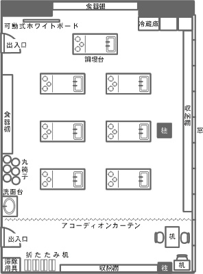 少人数からグループでの調理実習や栄養指導にご利用いただけます。